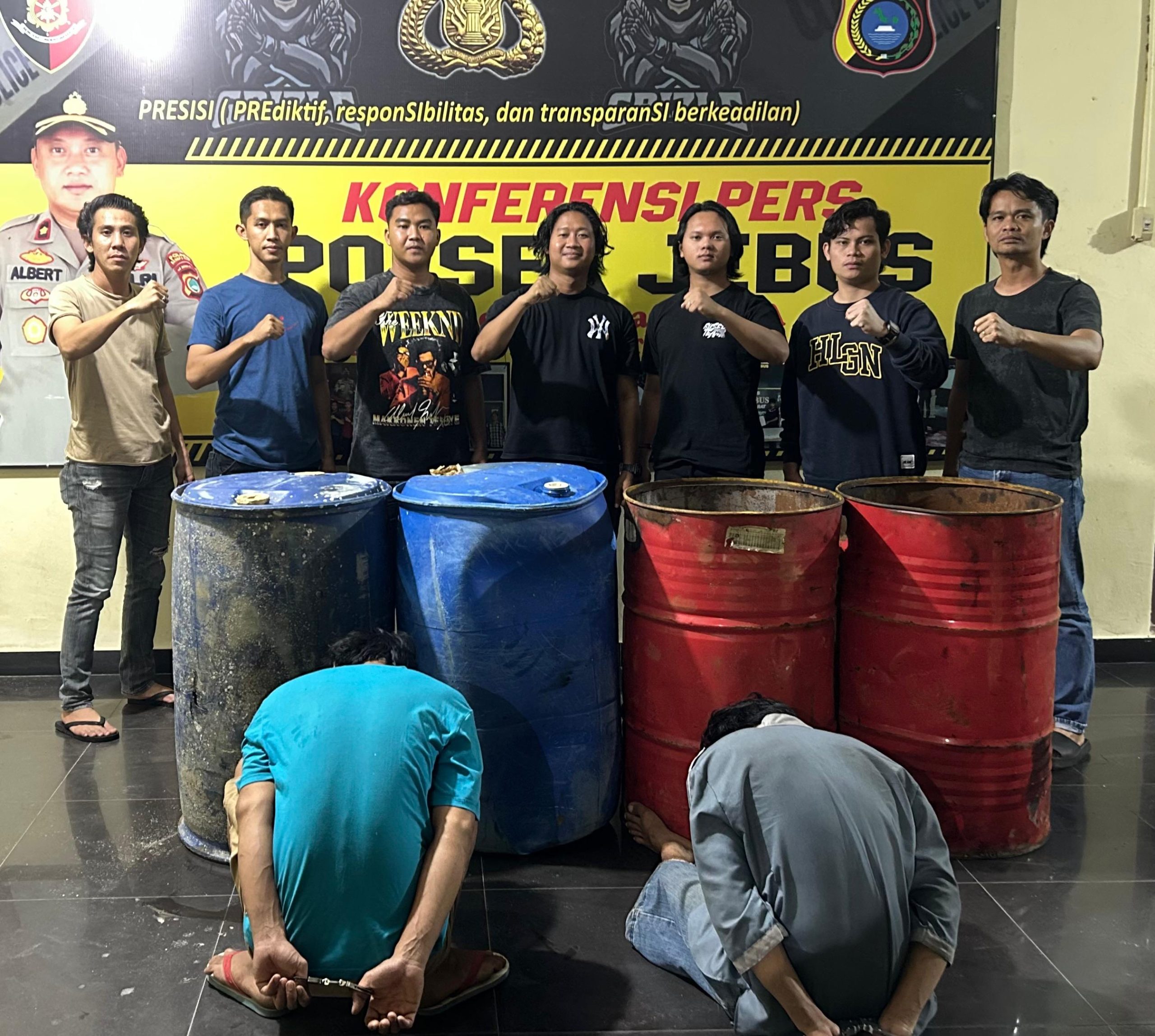 “Barang bukti yang berhasil diamankan sementara berupa 12 drum plastik dan 37 drum seng ukuran 200 liter. Kita masih melakukan pengembangan terhadap sisa barang bukti lainnya,” katanya.