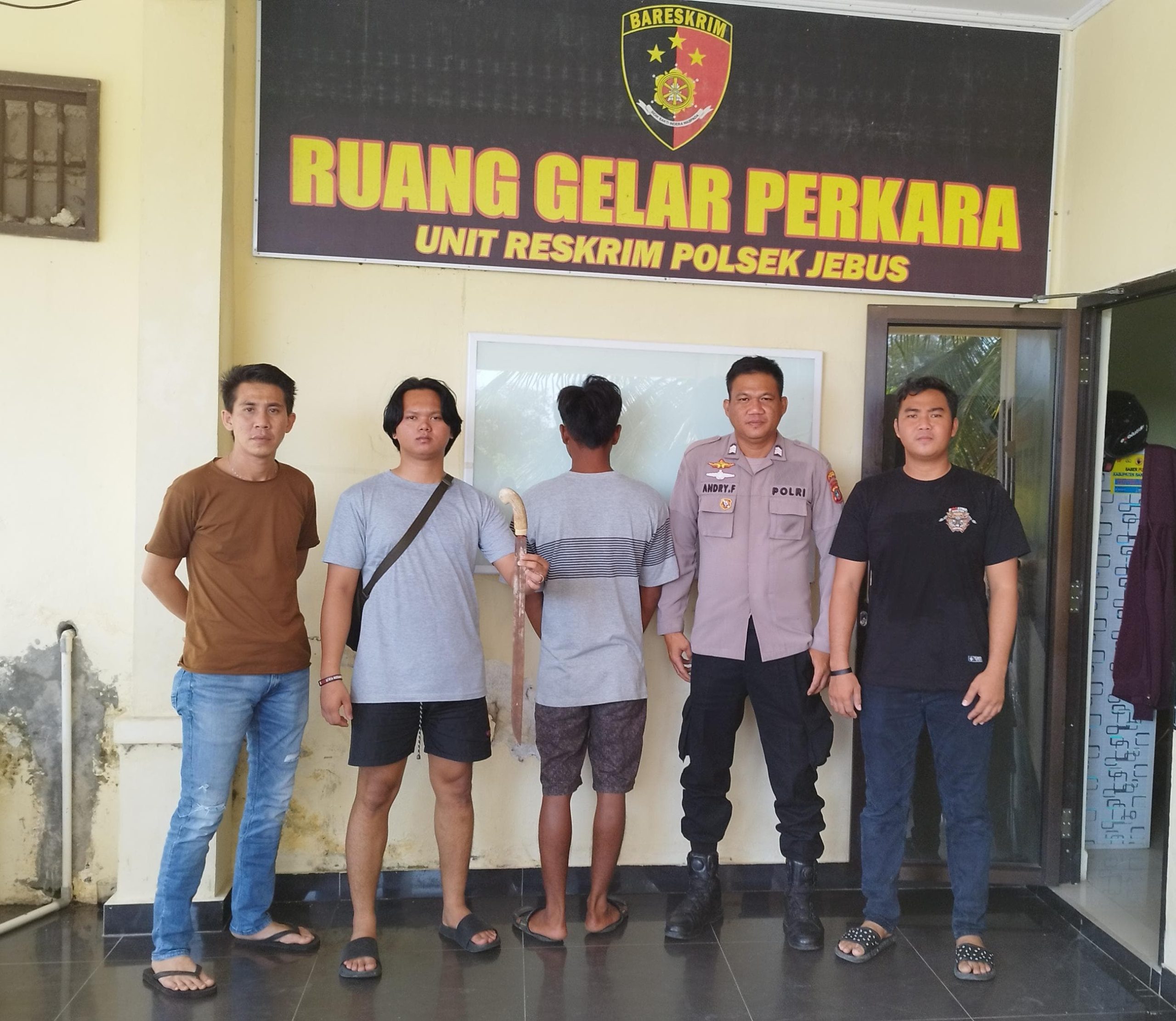 Menindaklanjuti laporan itu, Polsek Jebus langsung bergerak cepat mengamankan pelaku dan barang bukti berupa sebilah parang bergagang kayu.