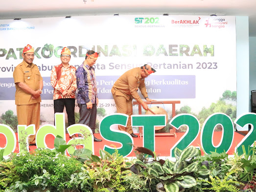 BELITUNG — Pj Gubernur Safrizal Zakaria Ali secara resmi membuka Rapat Koordinasi Daerah Badan Pusat Statistik (BPS) Sensus Pertanian untuk provinsi/kabupaten/kota se-Provinsi Kepulauan Bangka Belitung di Sheraton Belitung Resort, Kecamatan Sijuk, Senin (27/11/2023).