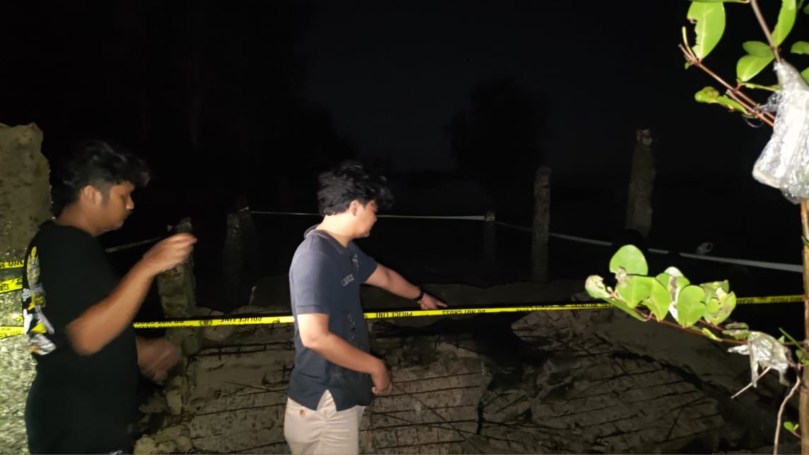 “Sekira pukul 13.00 WIB arus air mulai berubah dari kondisi surut mulai berangsur arus pasang laut dengan disertai angin kencang. Dikarenakan kondisi dermaga yang diketahui memang sudah mengalami kerusakan, secara tiba-tiba arus pasang air laut tersebut membuat salah satu tiang dermaga patah dan roboh,” jelas Intan, Kamis ( 28/9 ).
