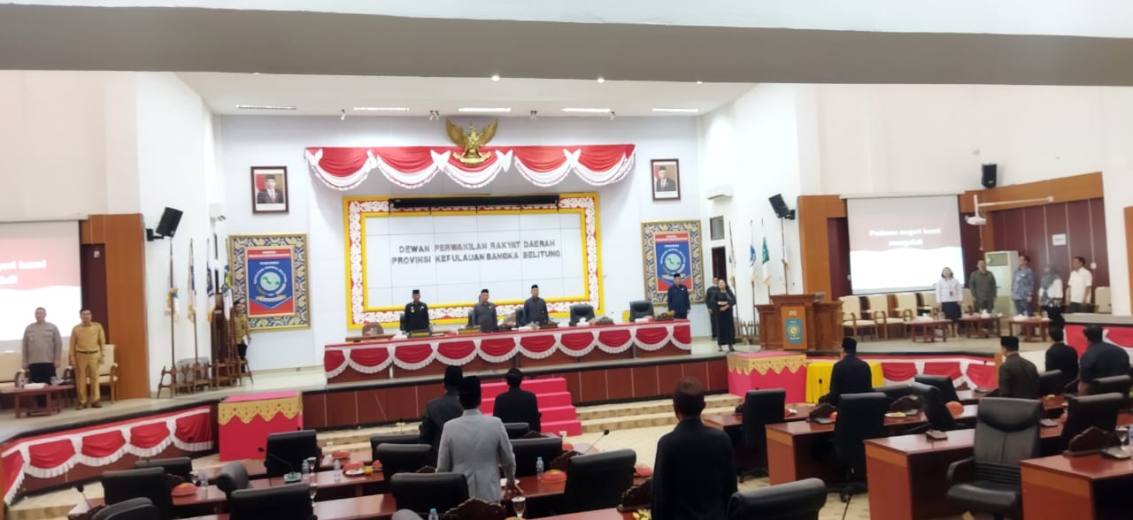 Rapat Paripurna tersebut dipimipin langsung Ketua DPRD Babel, dihadiri Pj Gubernur Suganda Pandapotan Pasaribu beserta OPD Pemprov dan Forkopimda Babel, di Ruang Rapat Paripurna DPRD Babel, Senin (4/9/2023).