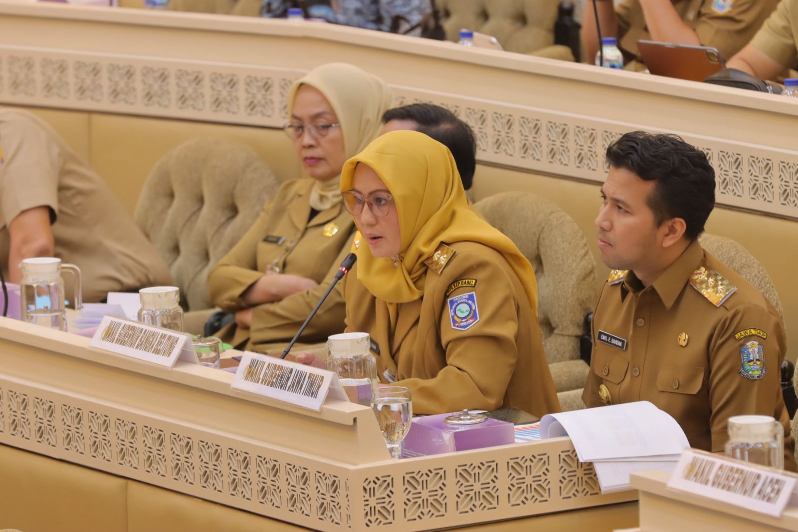 JAKARTA – Wakil Gubernur Kepulauan Bangka Belitung Hellyana, menghadiri rapat kerja Komisi II DPR RI bersama Menteri Dalam Negeri, para gubernur, serta bupati dan wali kota dari seluruh Indonesia, di Ruang Rapat Komisi II DPR RI, Senin (28/4/2025).