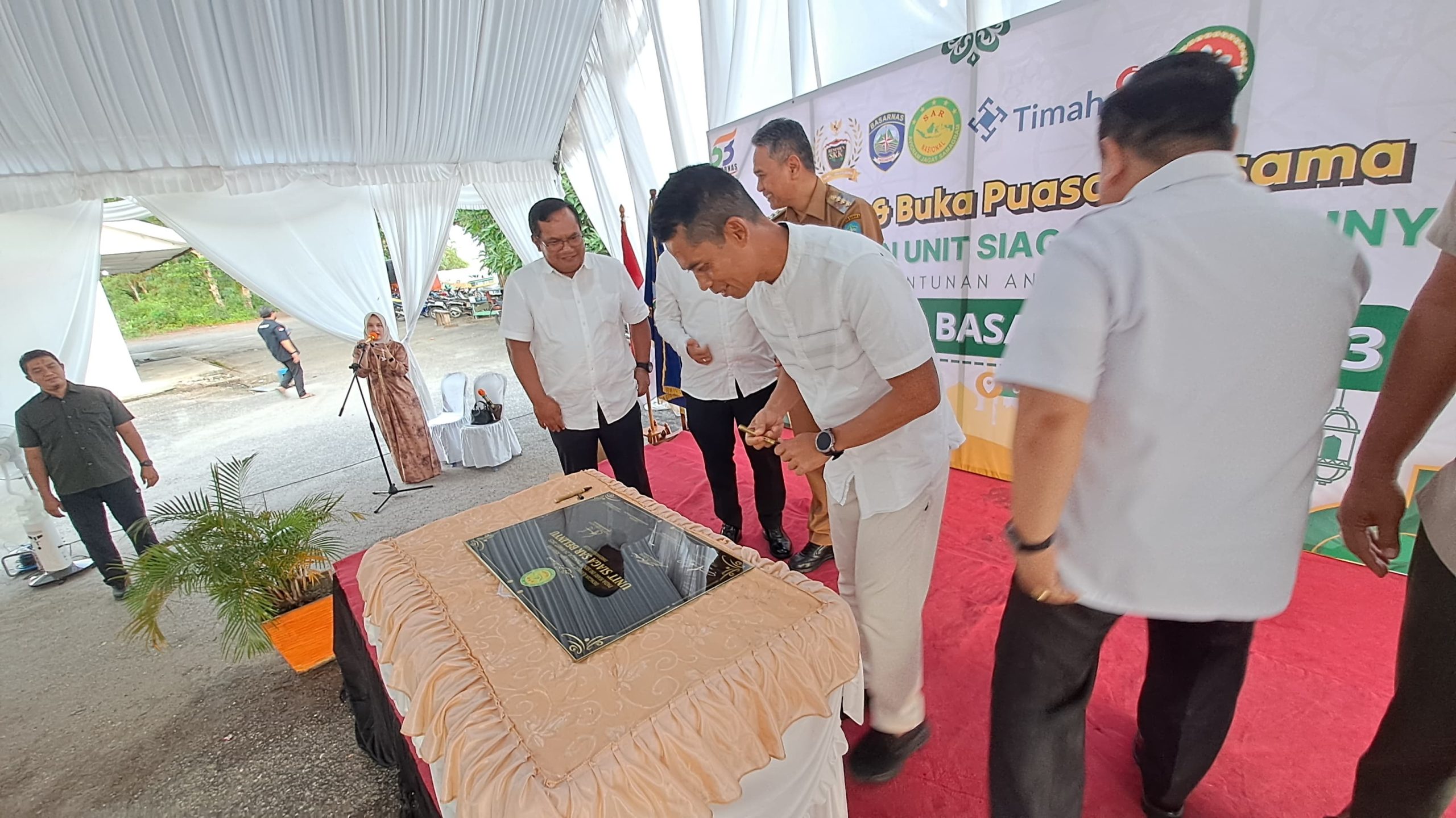 Setelah itu pemberian santunan berupa sembako, tas dan uang tunai kepada sejumlah anak yatim dan dilanjutkan dengan tausiyah agama serta buka puasa bersama.