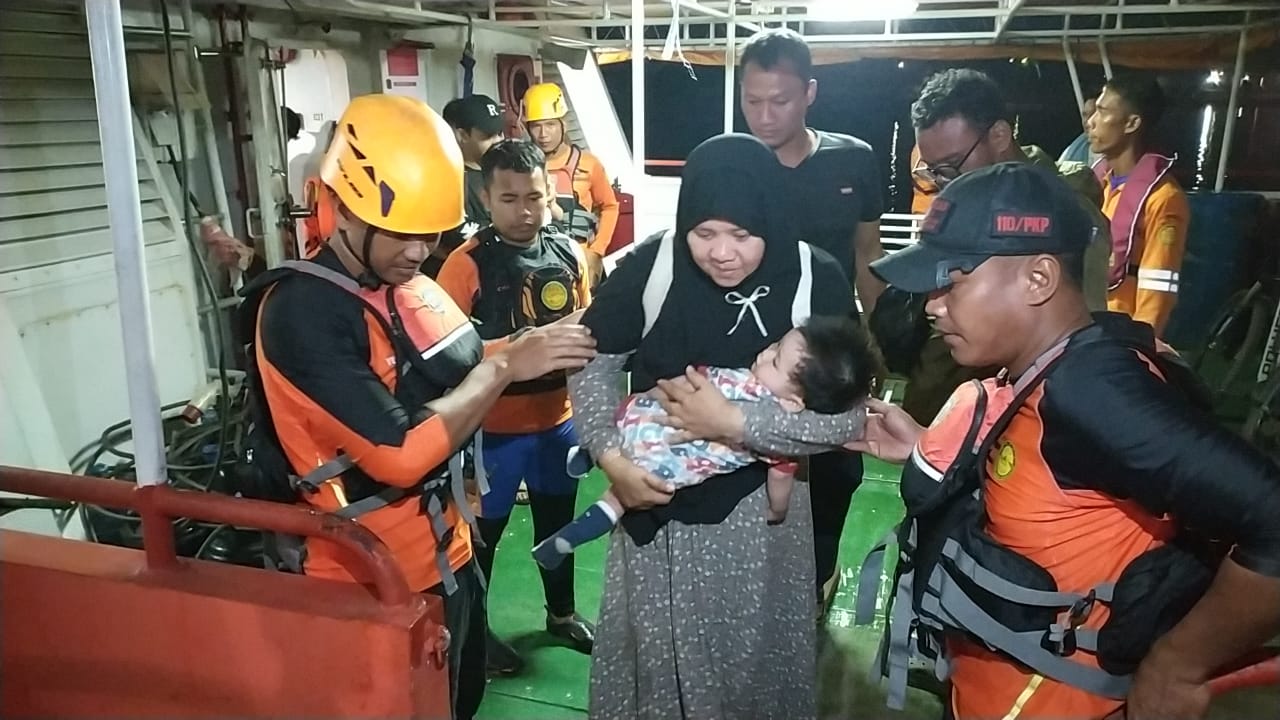 Setiba di lokasi, Tim SAR Gabungan berhasil mengevakuasi seluruh penumpang kapal, termasuk beberapa balita, anak-anak dan orang dewasa ke KN SAR Karna 246.