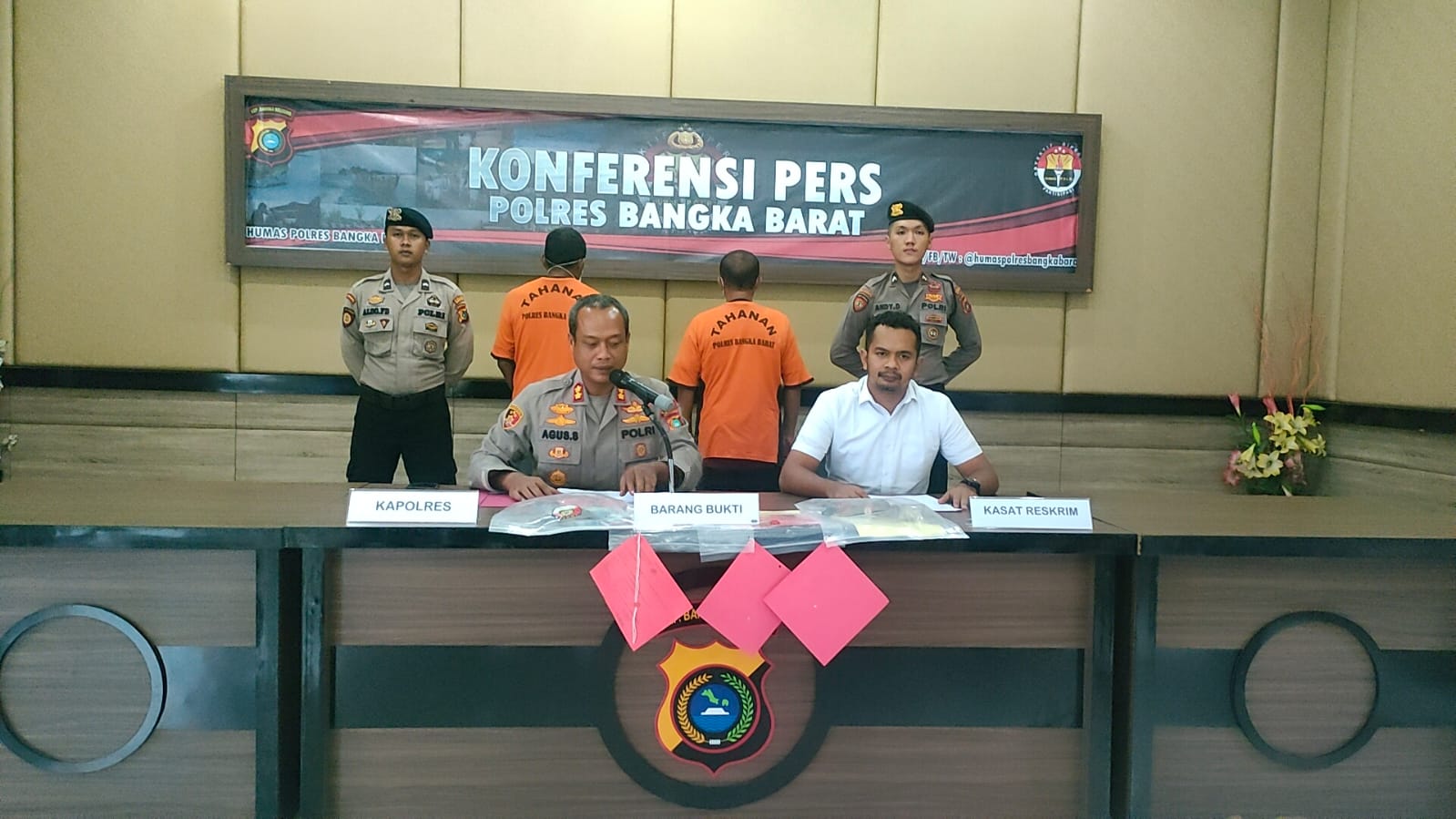 Kapolres Bangka Barat, AKBP Agus Siswanto saat Konferensi Pers di Gedung Catur Prasetya Mako Polres mengatakan, mantan Kades EP berperan