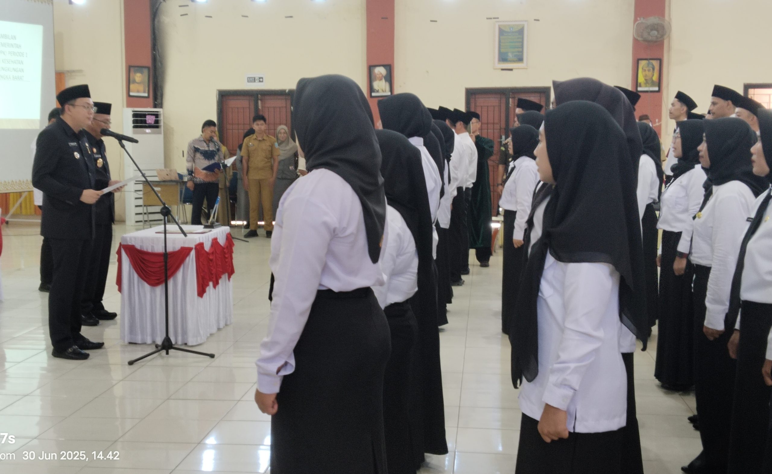 BANGKA BARAT — Bupati Bangka Barat Markus melantik Pegawai Pemerintah dengan Perjanjian Kerja ( PPPK ) tahun anggaran 2024, di Gedung Graha Aparatur Pemkab Bangka Barat di Kecamatan Mentok, Senin ( 30/6/2025 ) sore.