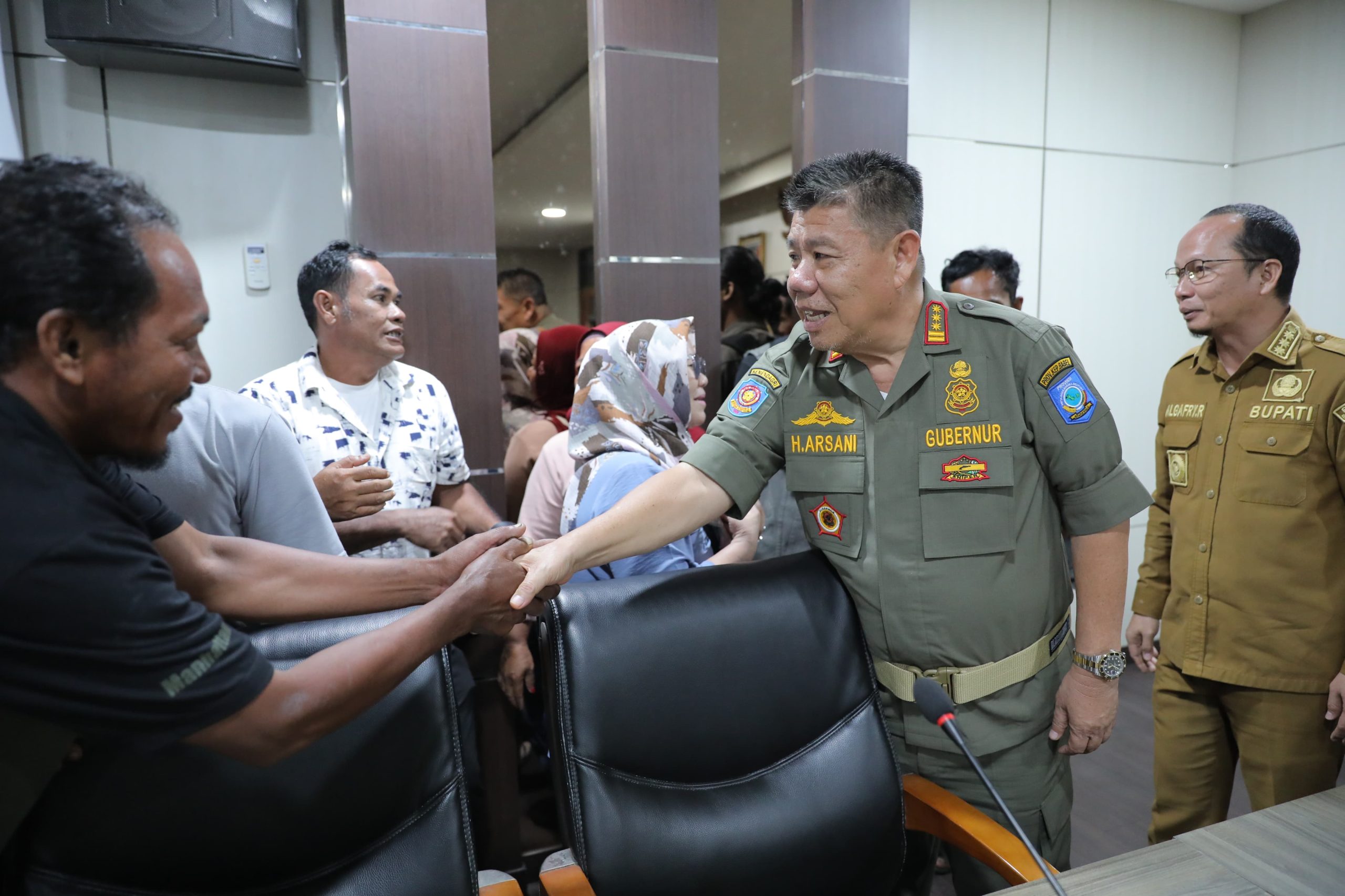 PANGKALPINANG — Belasan perwakilan masyarakat Desa Beriga, Kecamatan Lubuk Besar, Kabupaten Bangka Tengah (Bateng), menyambangi Kantor Gubernur Kepulauan Bangka Belitung (Kep. Babel) bersama Bupati Algafry Rahman, Dandim/0413 Letkol Inf Ikhsan Agung Widyo Wibowo, dan Kapolres I Gede Nyoman Bratasena, Senin (28/4/2025).