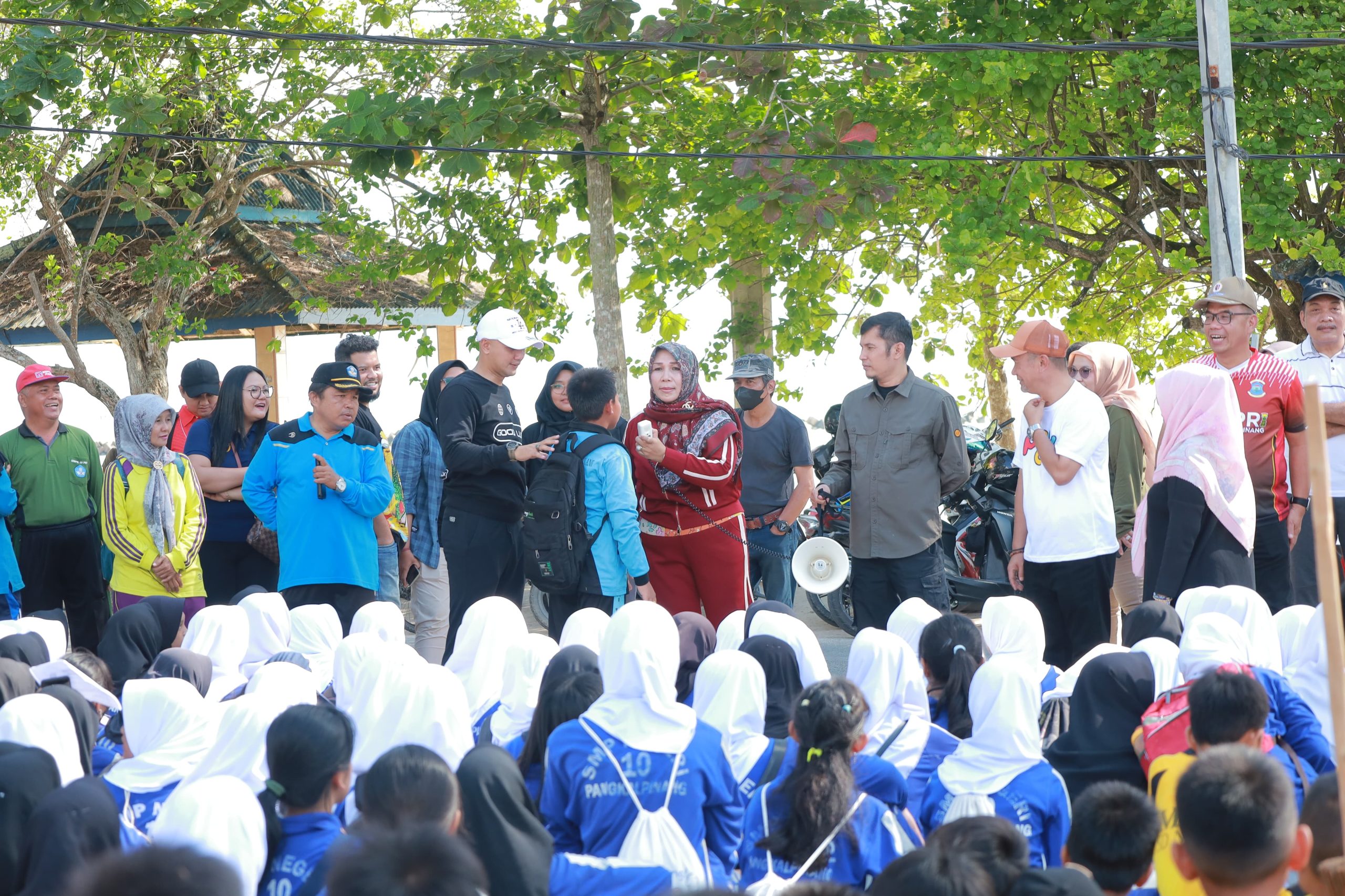 Para pelajar tersebut turut mengikuti kegiatan Gotong Royong Akbar di Lingkungan Pantai Pasir Padi Kota Pangkalpinang.