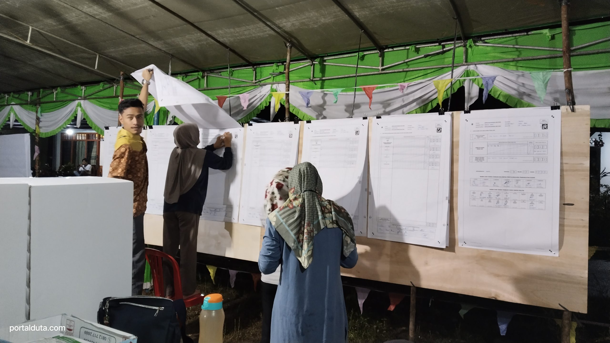 Pantauan portalduta, di TPS 17 dan 18 Kampung Senang Hati, Kelurahan Sungai Daeng, anggota KPPS baru selesai menghitung hasil pemungutan suara anggota DPR RI.
