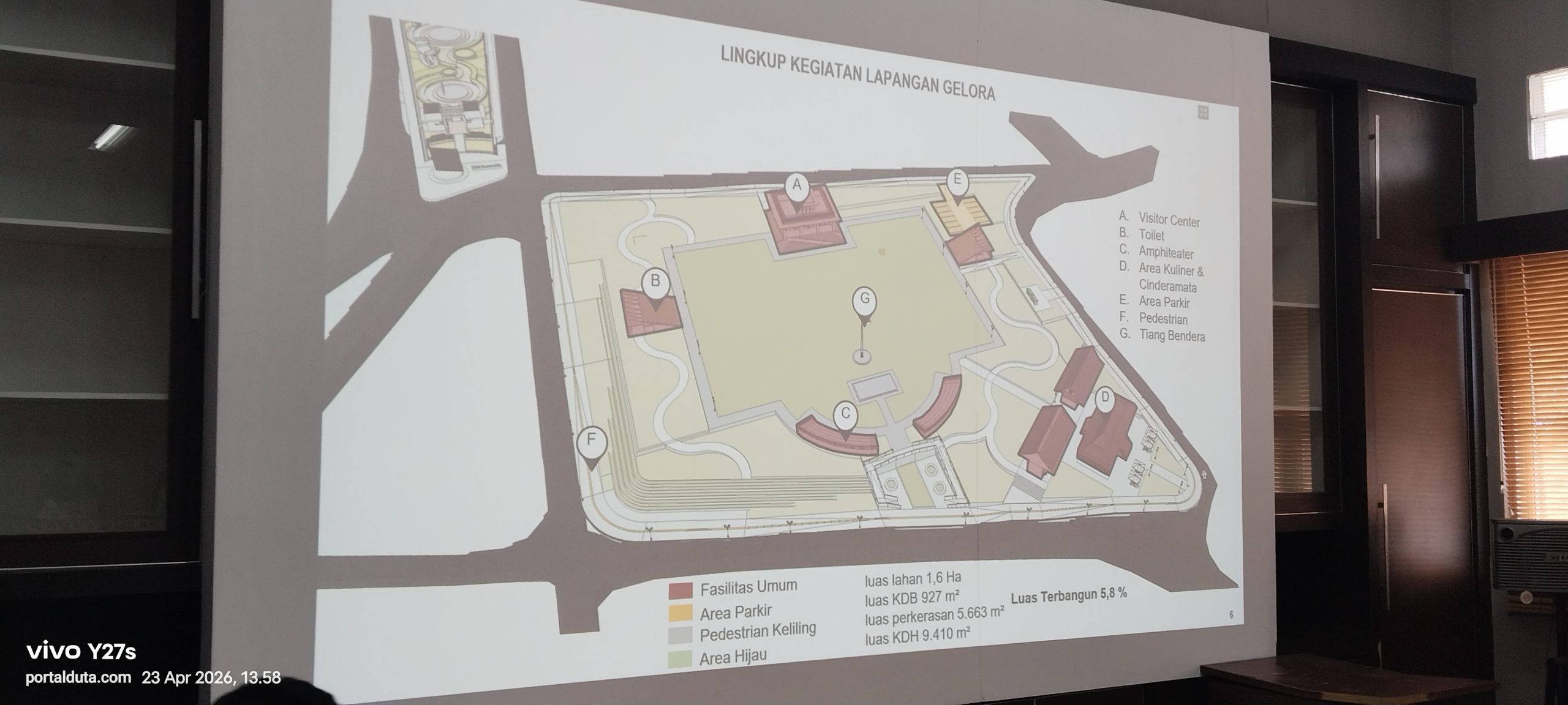 Sedangkan Lapangan Gelora akan ditata sedemikian rupa, dengan berbagai fasilitas seperti amphiteater, visitor centre, area kuliner dan cinderamata, toilet, area parkir serta pedestrian. ( SK )