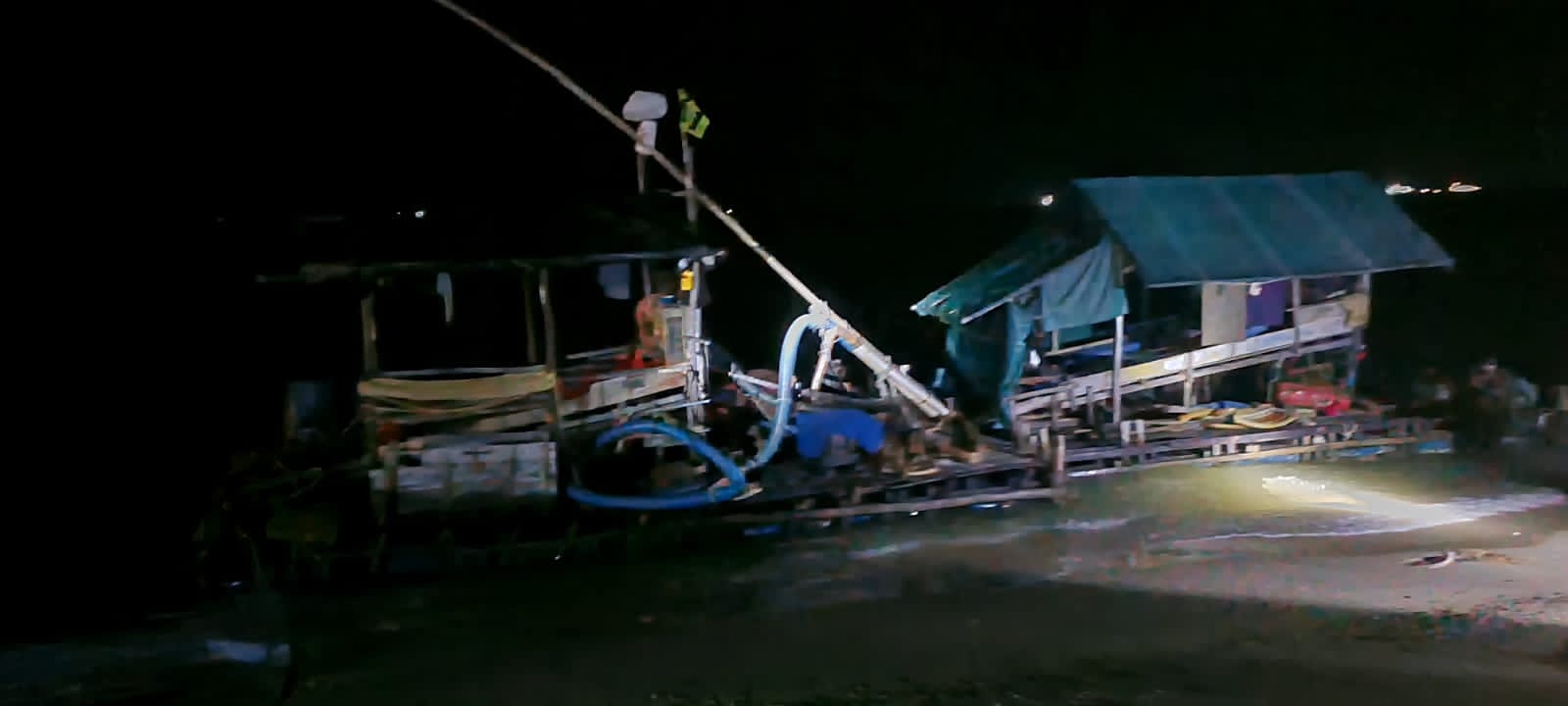 Saat diamankan dua ponton tersebut tidak sedang beraktivitas dan tak ditemukan pemilik atau pekerja serta didapati perlengkapan kerja, seperti bahan bakar minyak serta ransum yang berada di dalam ponton tersebut.