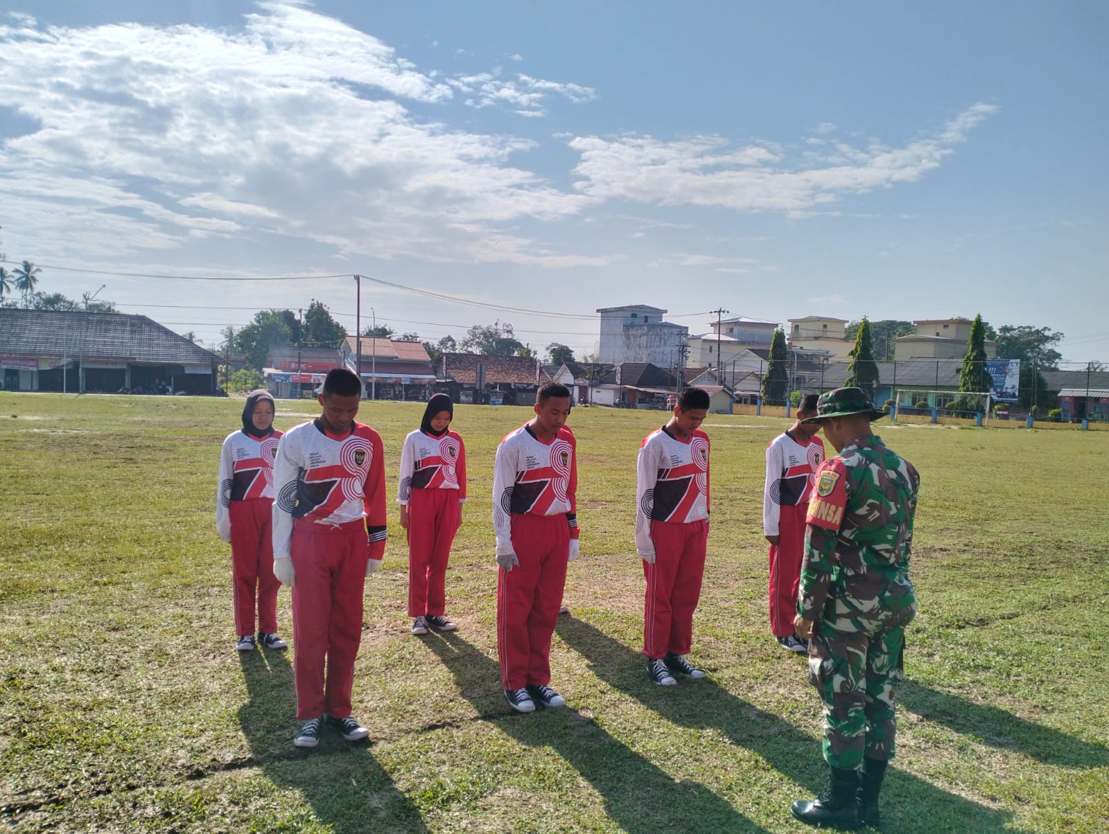 BANGKA BARAT — Jelang peringatan Hari Kemerdekaan Republik Indonesia tanggal 17 Agustus, Babinsa Koramil 431-01/Jebus, Serda Wili Sihombing kian gencar melatih para pelajar yang tergabung dalam Paskibra Kecamatan Jebus dan Parittiga, Senin, (07/08/2023 ).