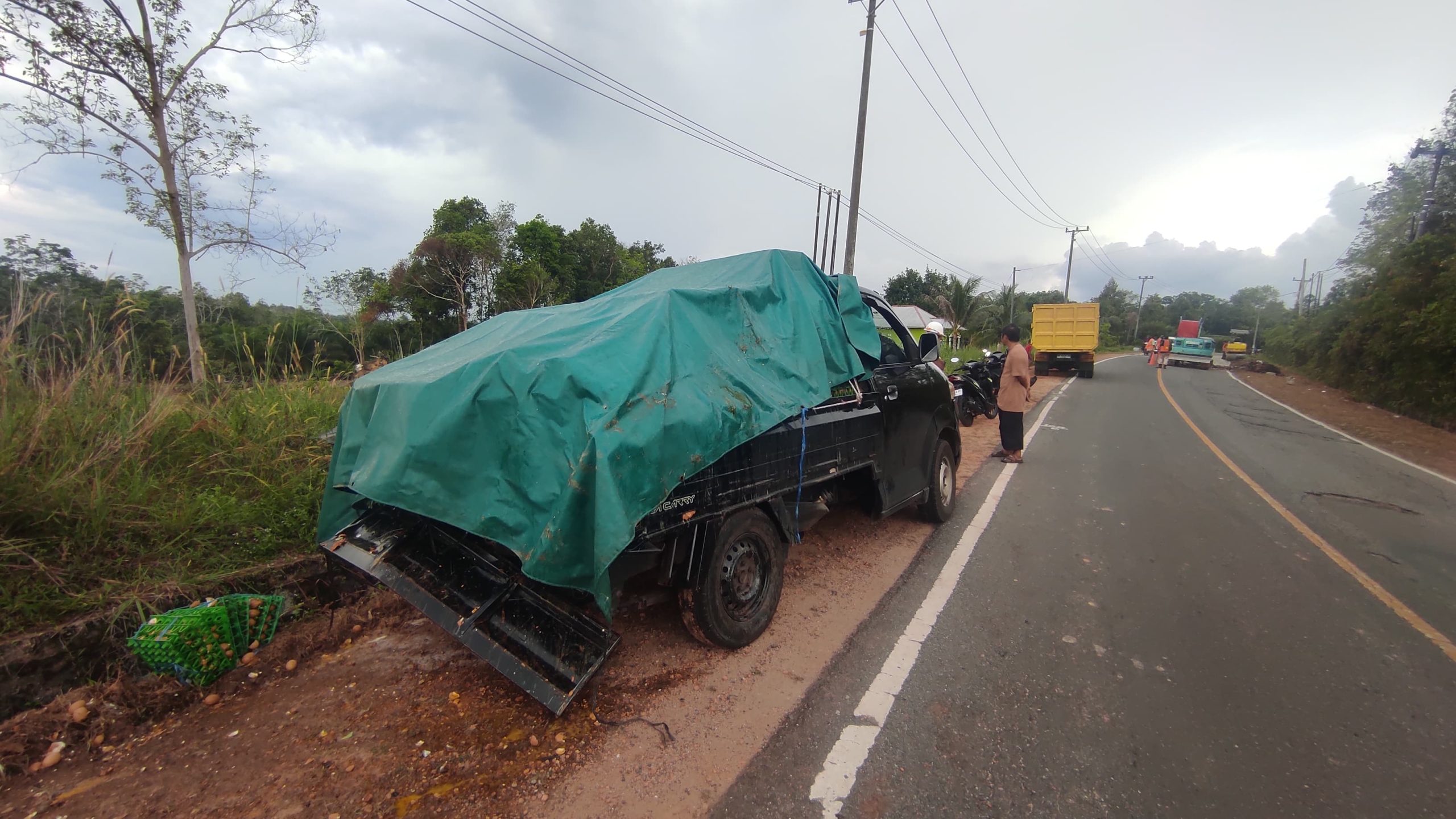 Namun nahas, dari arah belakang, sebuah truk Mitsubishi Colt Diesel berwarna kuning nomor polisi BN-8578-QA bermuatan pasir timah yang dikemudikan IF (42) tidak sempat melakukan pengereman maksimal, sehingga menabrak bagian belakang mobil pick up tersebut.