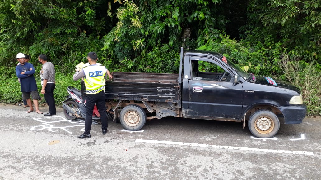 ” Kecelakaan melibatkan dua kendaraan, satu sepeda motor Yamaha Mio J warna putih dan Toyota Pick Up warna hitam. Kejadian pukul 22.00 WIB,” ujar Sianturi saat dikonfirmasi, Jum’at ( 17/12 ) pagi.