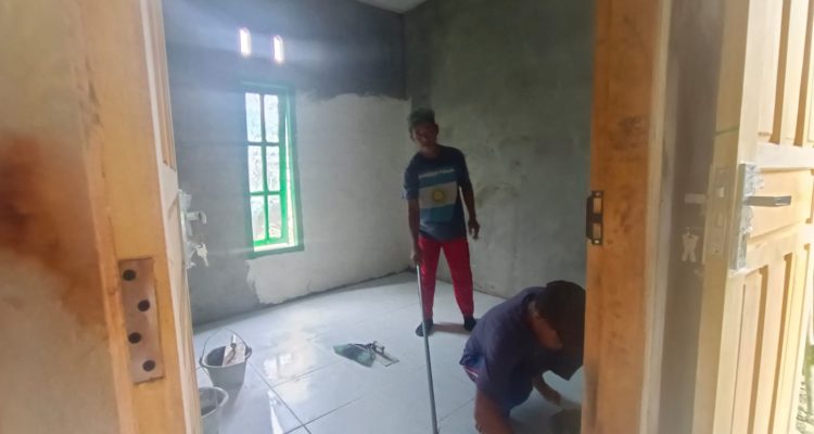 Rehab RTLH Ibu Kasmiri Telah 65 Persen, Personel Pasang Papan Dinding Dapur