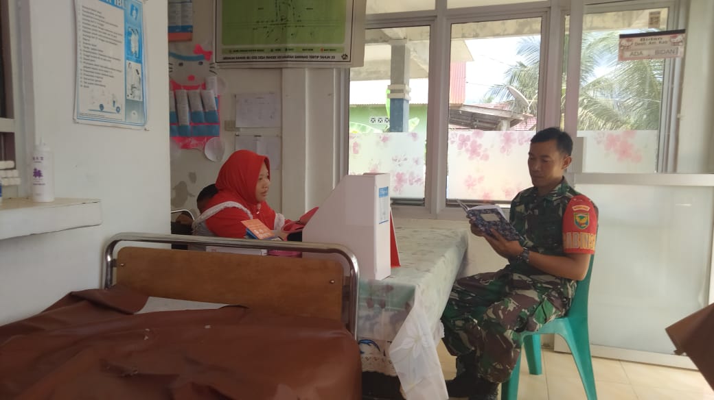 Upaya Tekan Stunting, Babinsa 431-02/Mentok Kunjungi Poskesdes Pangek