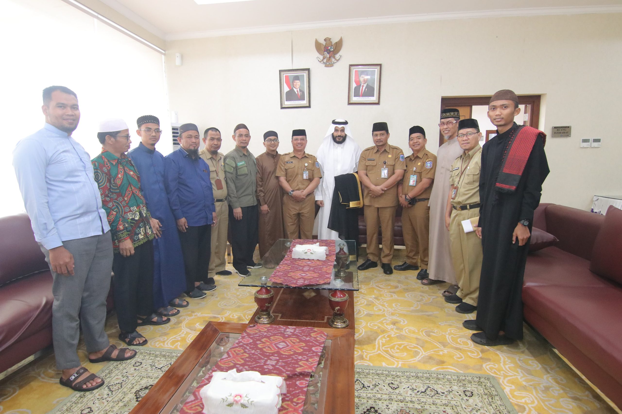 Sebelumnya di ruang VVIP, Pj. Sekda Fery menyempatkan berbincang dengan Syeikh Abdurrahman Al Ausy melalui penerjemah, mengenai beberapa topik penting seperti situasi Palestina saat ini.