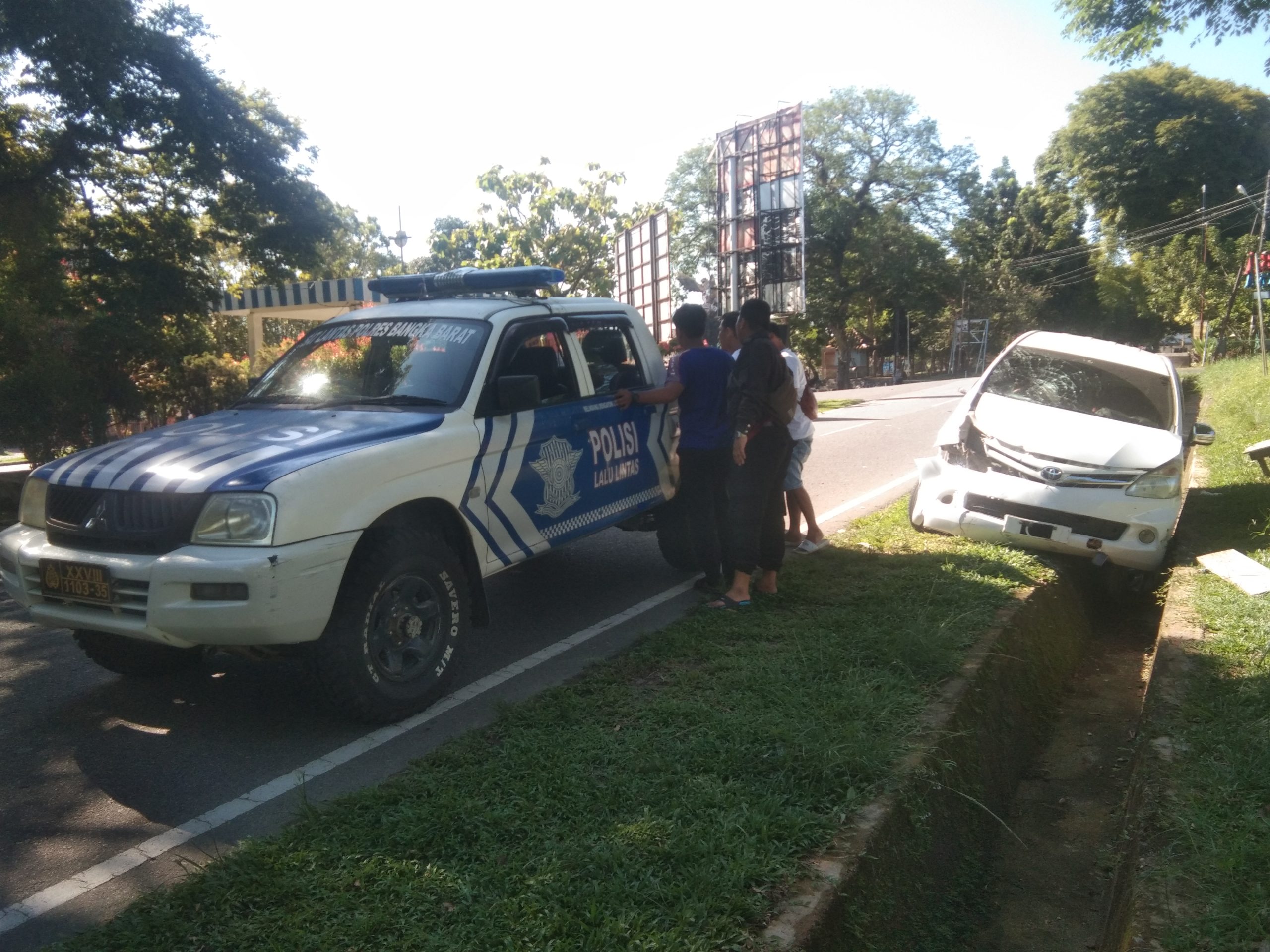 Keterangan sementara dari anggota Satlantas di tempat kejadian, tabrakan terjadi di persimpangan dekat Lapangan Gelora Mentok. Yamaha Vixion hendak melintas di simpang empat Lapangan Gelora ditabrak oleh Avanza putih yang meluncur dari arah rumah dinas bupati menuju ke Pasar Mentok.